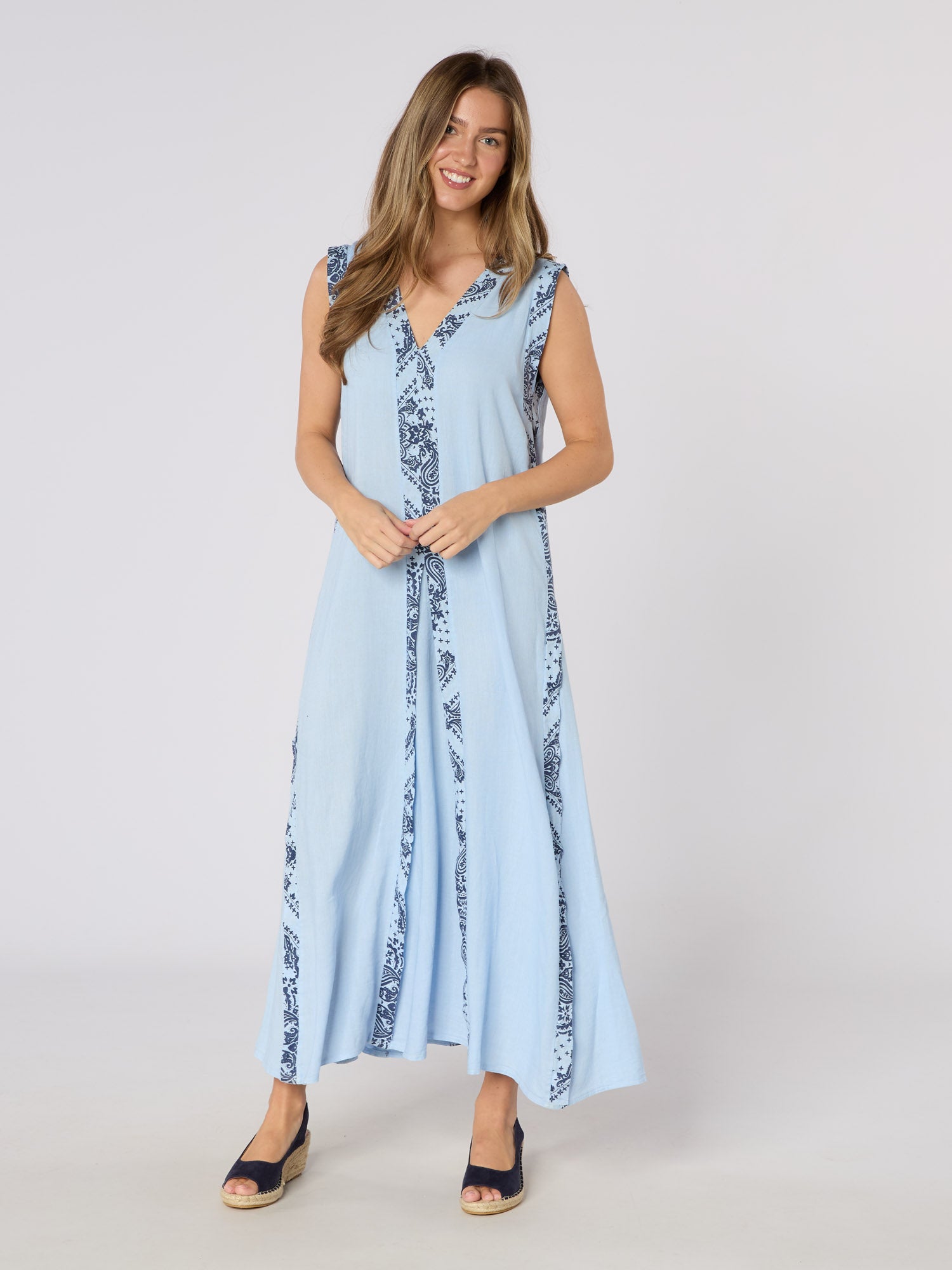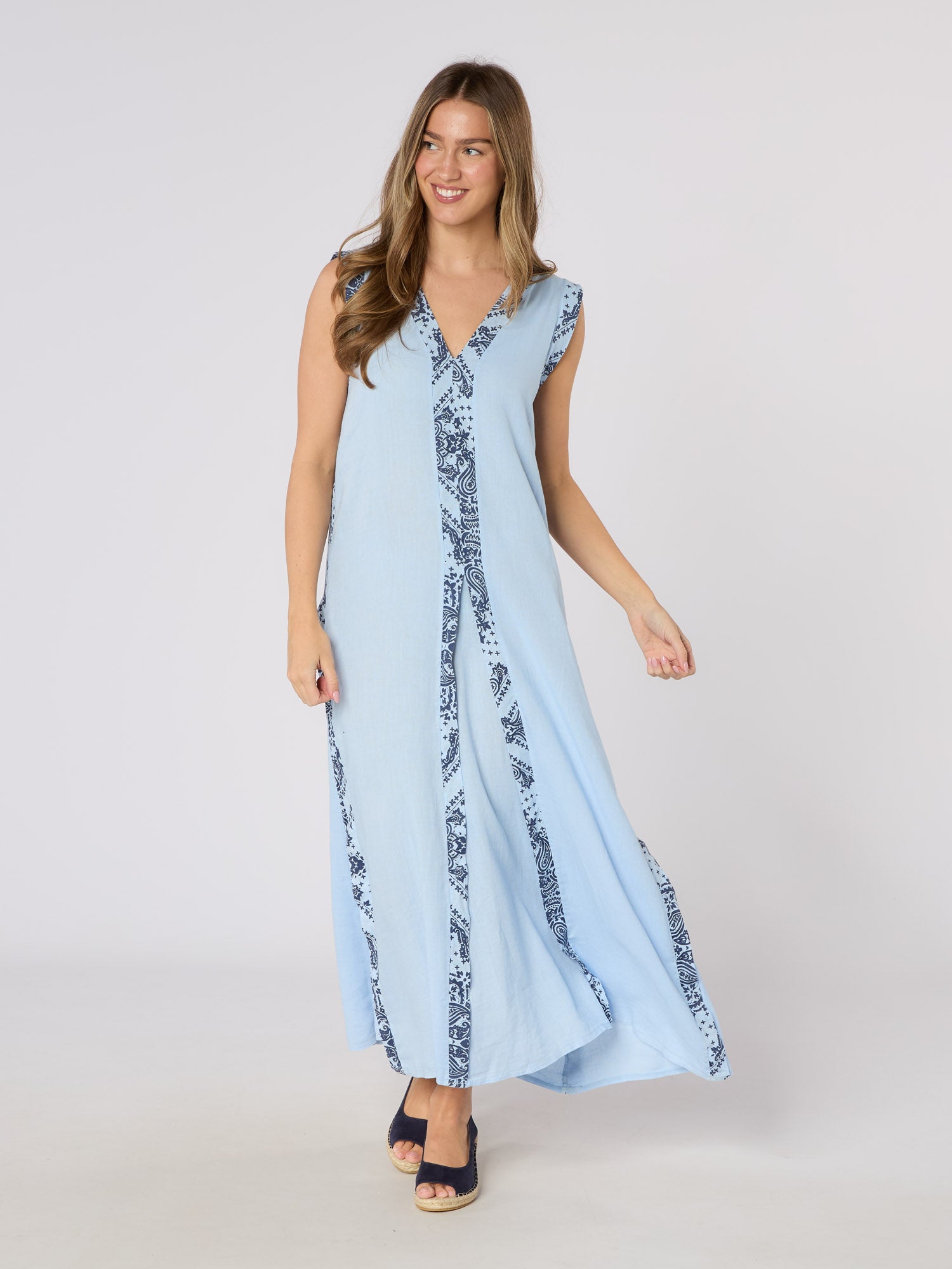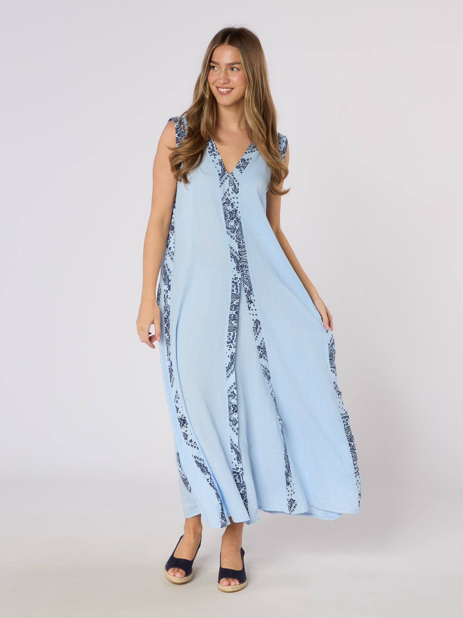 Experience effortless elegance with the Barberino Maxi Dress. This stunning blue maxi dress features a striking contrast print and it's flowy silhouette ensures comfort while making a bold fashion statement. Elevate your style and embrace the beauty of this must-have dress!